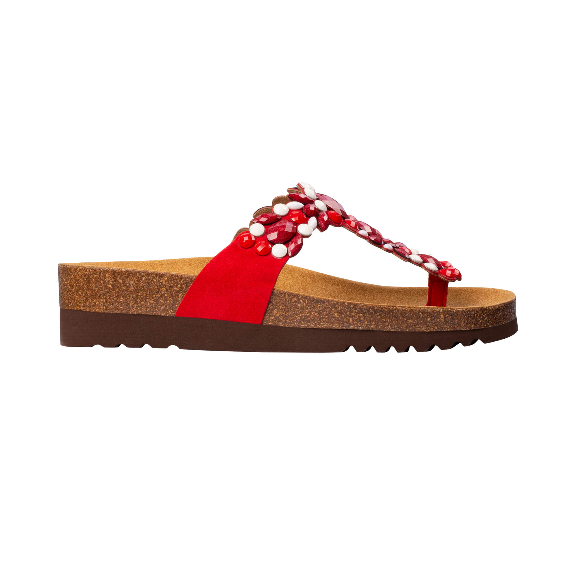 Put jewels on your feet with Alicia shoes. The colourful flip-flop version and the extremely comfortable sandal with a double adjustable strap are both finished with elegant flower-shaped crystals that make them bright and flashy, perfect for women who don't want to sacrifice comfort for glamour! Typical Scholl comfort is guaranteed by the upper structure that embraces the foot and the Scholl Bioprint® footbed made of natural cork and rubber, designed to keep your foot in the right position and make the shoe both flexible and light. The Scholl Bioprint® footbed now has a soft core that will make your walk even more comfortable thanks to its new formula.
