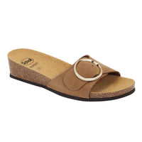 Amalfi mules combine combine femininity and touches of elegance on a simple and passe-partout design. The 4 cm wedge enhances the models that will embellish your clothing thanks to the golden circle that brightens a trendy coloured upper. The shoe is also flexible, lightweight and equipped with Scholl Bioprint® technology with the characteristic natural cork and rubber footbed designed to keep your foot in the right position. The Scholl Bioprint® footbed now has a soft core that will make your walk even more comfortable thanks to its new formula.