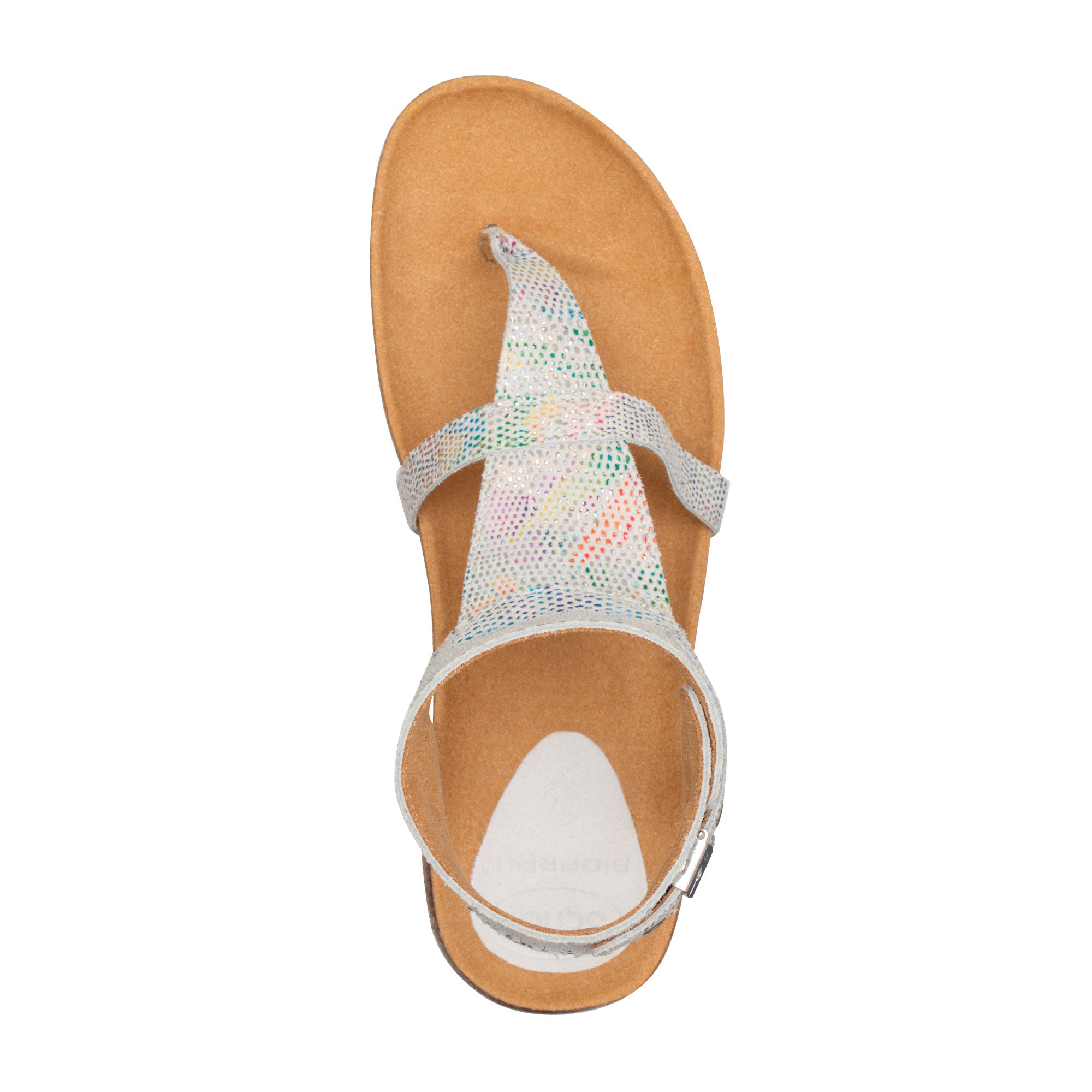 Printed suede leather upper, trendy slave style, iconic logoed buckles and a soft Bioprint® insolethe: Berry 2.0 flip-flop sandal is the summer must-have that must not be missing from flip-flop lovers' wardrobe! Exquisitely simple with its clean lines, it completes summer outfits providing comfort and lightness with every step you take. Moreover, the footwear is flexible, light and fitted with Scholl Bioprint® technology with its characteristic natural cork and rubber insole designed to help keep your foot in the right position.