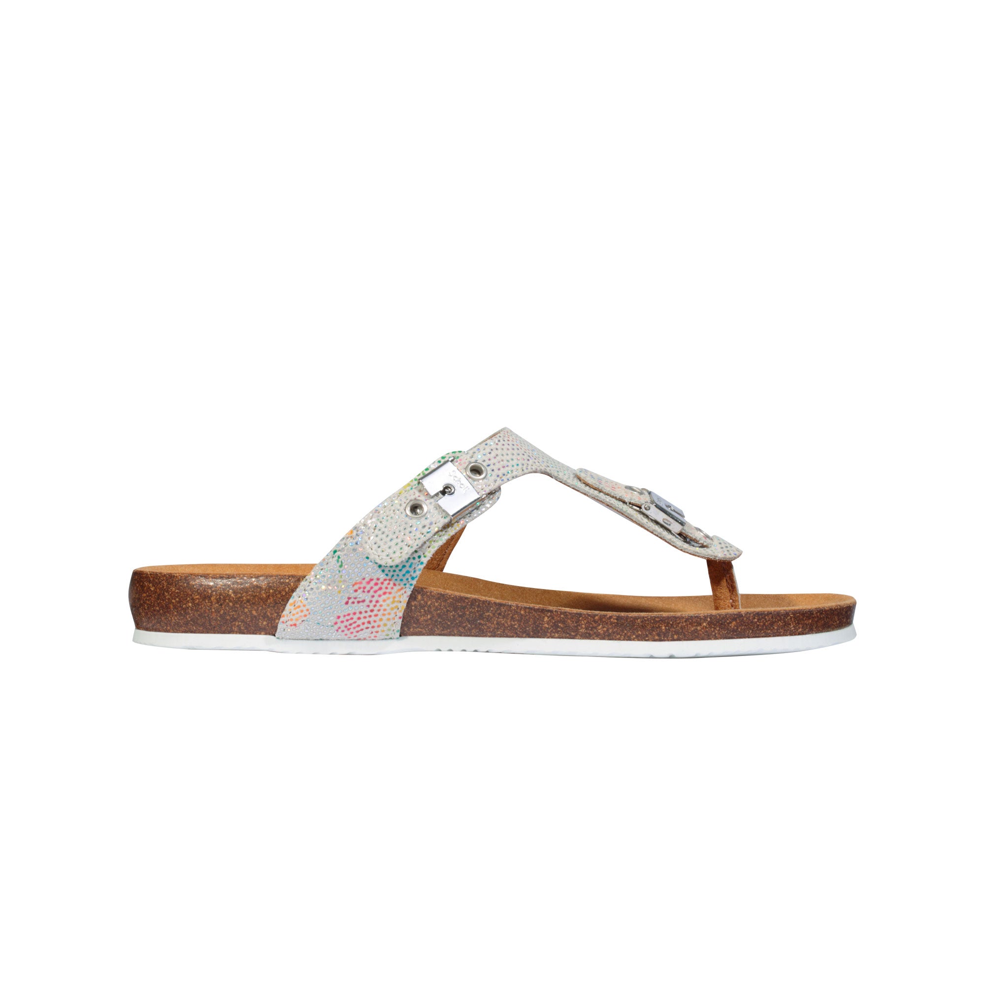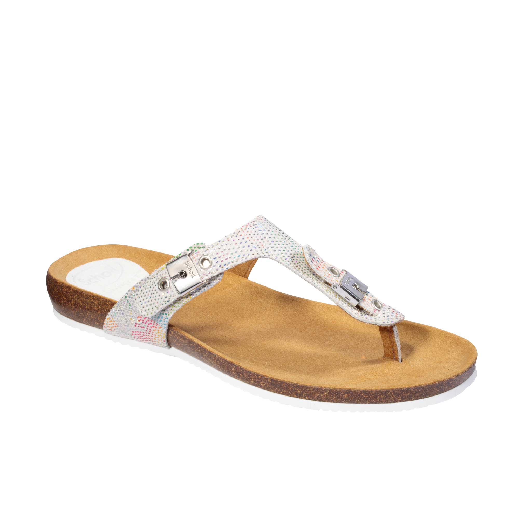 Printed suede leather upper, trendy slave style, iconic logoed buckles and a soft Bioprint® insole: the Bimini 2.0 is the must-have flip-flop of the summer, a trendy fashion statement for this accessory lovers. Exquisitely sleek design perfect for all summer outfits bestowing comfort and weightlessness to every step. Moreover, the footwear is flexible, light and fitted with Scholl Bioprint® technology with its characteristic natural cork and rubber insole designed to help keep your foot in the right position.