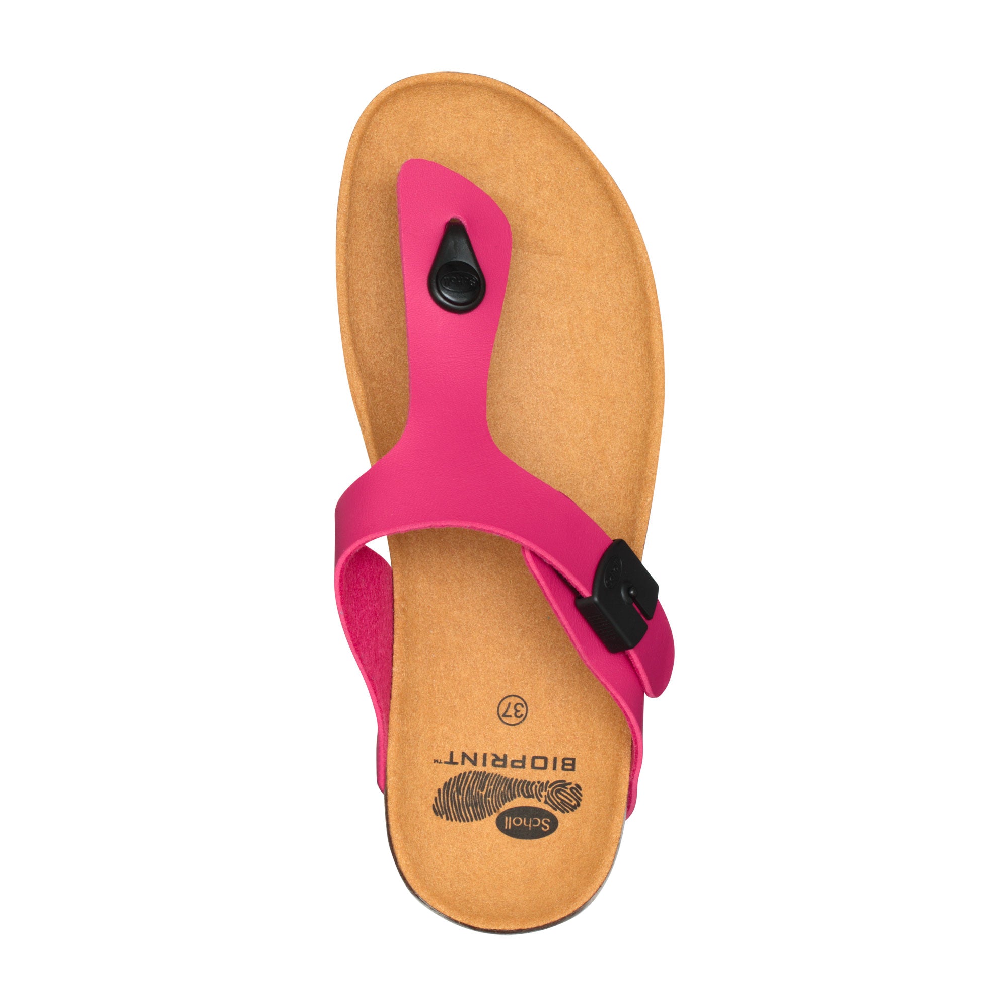 Boa vista up is a flip-flop with Scholl Bioprint® technology fitted with the natural cork and rubber footbed which has been ergonomically designed to keep the foot in the right position. Boa vista up is characterised by a colorful synthetic upper that delicately embraces the foot, perfect for hot summer days. The buckle on the upper ensures optimal adjustability.