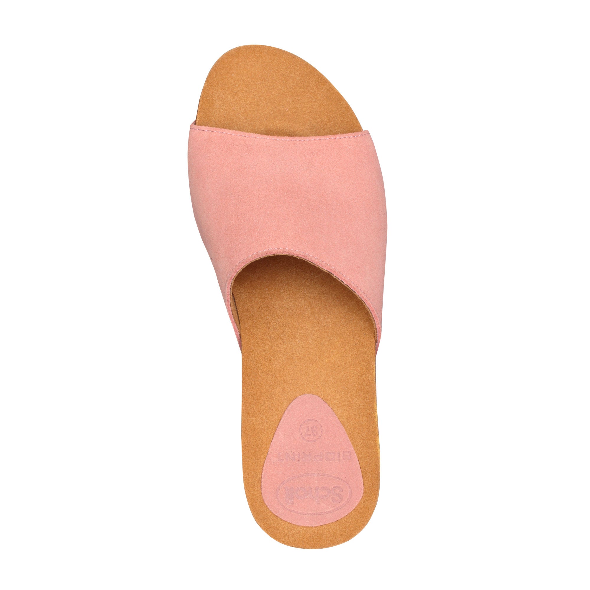 The Scholl Enigan sandals in soft suede leather are an absolute must-have thanks to their minimal, clean design. Thanks to their average height wedge heel, they are a real passe-partout in your wardrobe, to be worn from morning to night. They are exquisitely simple with their clean lines and they softly embrace your foot, providing a pleasurable sensation of comfort step by step.Moreover, the footwear is flexible, light and fitted with Scholl Bioprint® technology with its characteristic natural cork and rubber insole designed to help keep your foot in the right position.