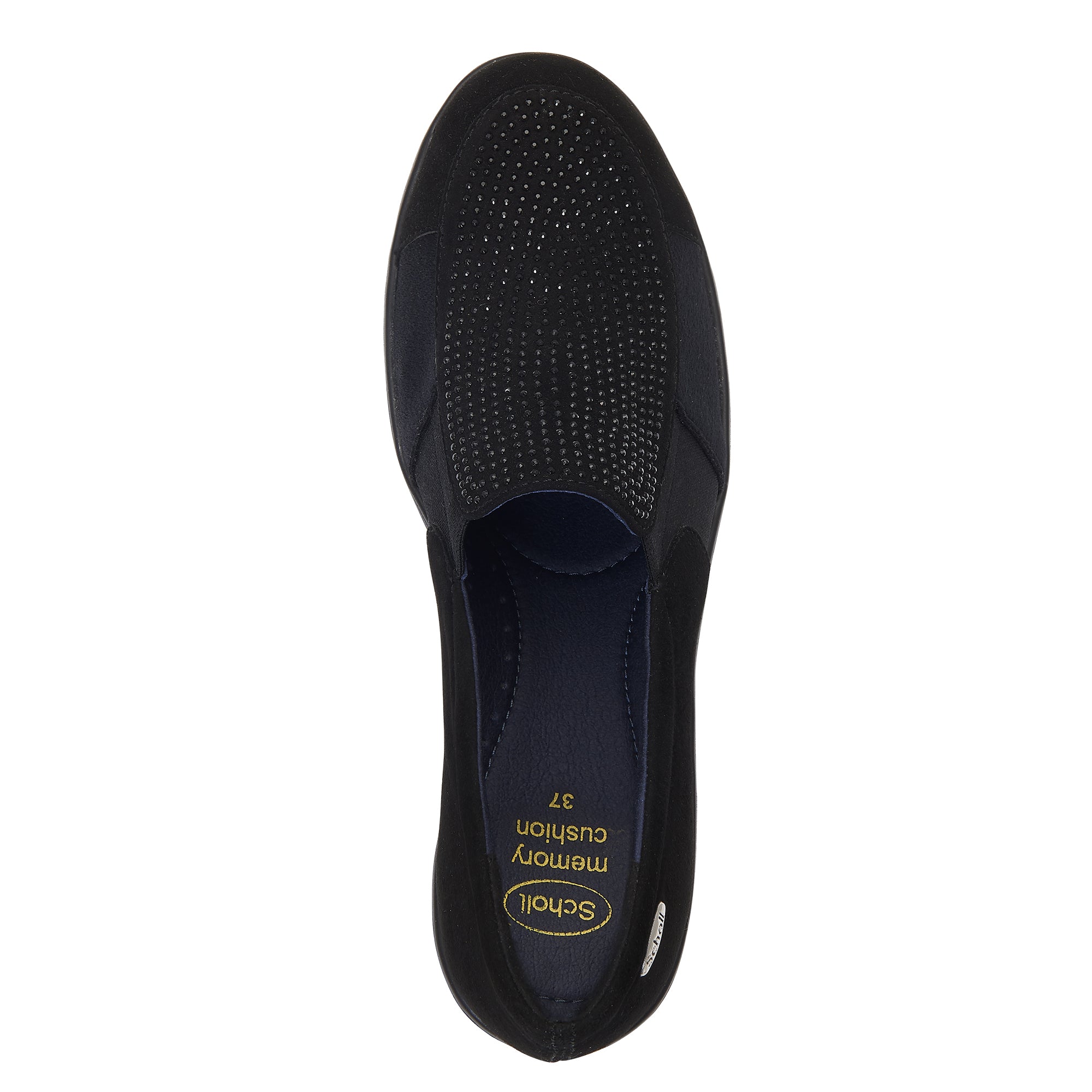 Scholl's comfort-chic best seller is back! Enja has been designed to perfectly satisfy the taste of those women who are seeking refined shoes suitable for long walks. The 5 cm high wedge heel provides the utmost comfort by slimming your figure down, while the refined, rounded and trendy design adapts to different styles, tastes and ages. The typical comfort of Scholl footwear is guaranteed by its soft suede upper, its Aloe Vera-treated microfibre lining, its wide fit (G fitting) and its removable, latest generation washable, breathable, anti-odour, anti-stain and hypoallergenic microfibre On-steam® footbed. Moreover, the special footbed with Scholl Memory Cushion® technology delicately welcomes your foot by re-distributing pressure all over the entire sole, making every step lighter.