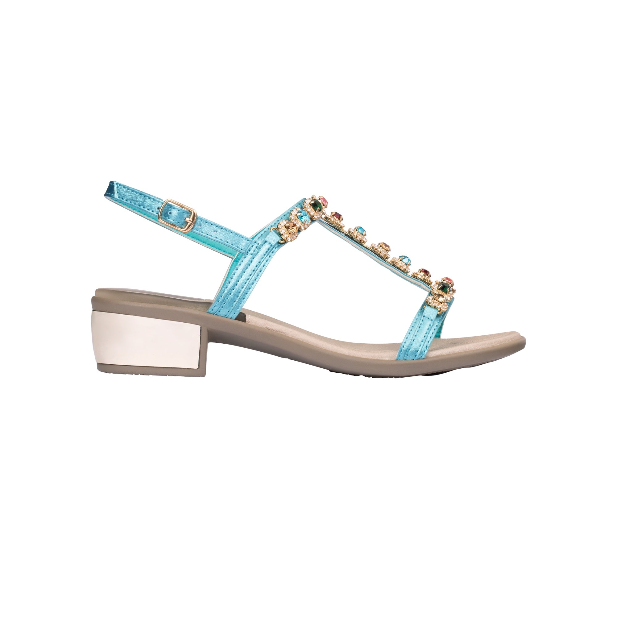 Floralie is the novelty in the Scholl Collection. This is an extremely elegant, refined sandal, designed to make your foot even more beautiful thanks to its "T-Shape" and the coloured stones that shine like jewels over the entire upper. The fine bands delicately contain your foot and the strap and buckle make it possible to adjust the sandal. Floralie is characterised by its Scholl Gelactiv® technology insole that absorbs any shock suffered while walking, providing comfort and wellness all day long. Moreover, the insole is covered with a latest generation microfibre fabric: washable, breathable, anti-odour, hypoallergenic and stain-resistant.