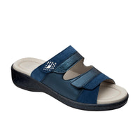 Marinella is slipper with Scholl Memory Cushion® technology, ideal for comfortably standing on your feet all day long. The Velcro closure enables the utmost adaptability of the footwear model, while the comfortable slip-resistant wedge heel allows stability and comfort. The upper has been embellished with sparkling rhinestones.Moreover, the insole has been covered with latest generation microfibre: washable, breathable, anti-odour, hypoallergenic and stain-resistant. Moreover, the insole with Scholl Memory Cushion® technology adapts itself to the shape of your foot and helps redistribute pressure all over the entire sole, leaving you with a sensation of lightness.