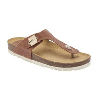 Maya, the flip-flop of the Iconic Scholl line, comes with a comfortable metal buckle that allows this footwear to be adjustable without sacrificing style. Its leather upper embellishes this model. The Softstep® footbed, with its special shape in the arch area of the foot, increases the feeling of comfort and helps to support your weight during every step. Thanks to the combination of natural cork and rubber it is both flexible and soft.