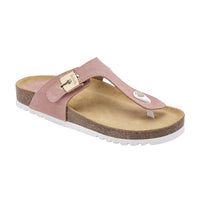 Maya, the flip-flop of the Iconic Scholl line, comes with a comfortable metal buckle that allows this footwear to be adjustable without sacrificing style. Its leather upper embellishes this model. The Softstep® footbed, with its special shape in the arch area of the foot, increases the feeling of comfort and helps to support your weight during every step. Thanks to the combination of natural cork and rubber it is both flexible and soft.