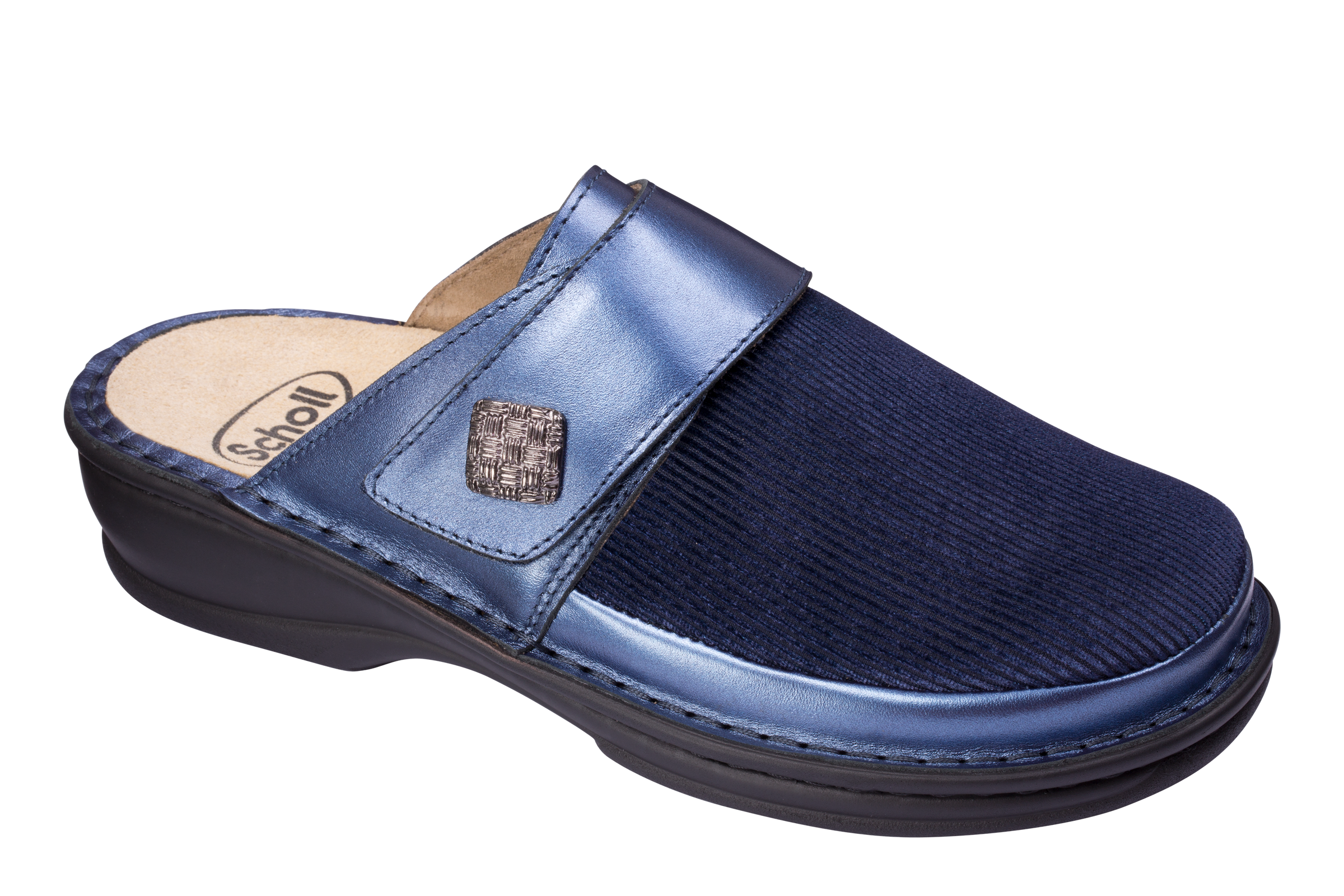 Ondina is a slipper that has been designed to be comfortably worn yet which elegantly adapts itself to all styles and scenarios. A wide portion of the leather upper is elasticated in order to ensure greater comfort for particularly delicate feet or those with hallux valgus (bunions). Moreover, the Velcro band on the upper ensures excellent adjustability. This footwear is characterised by Scholl Bioprint® - Removable Insole technology, with a removable cork and rubber insole.