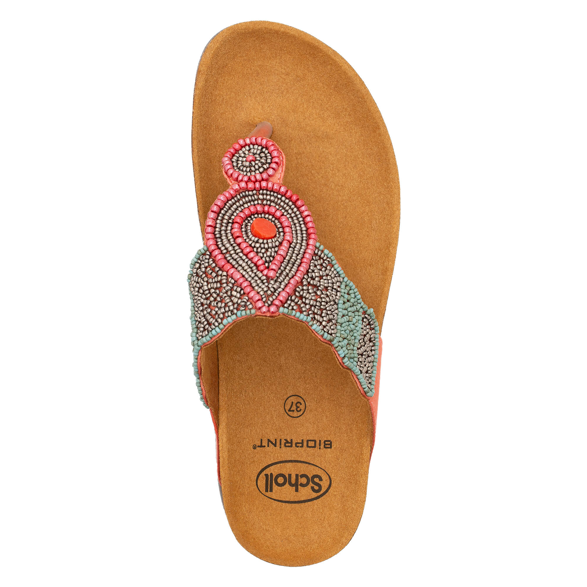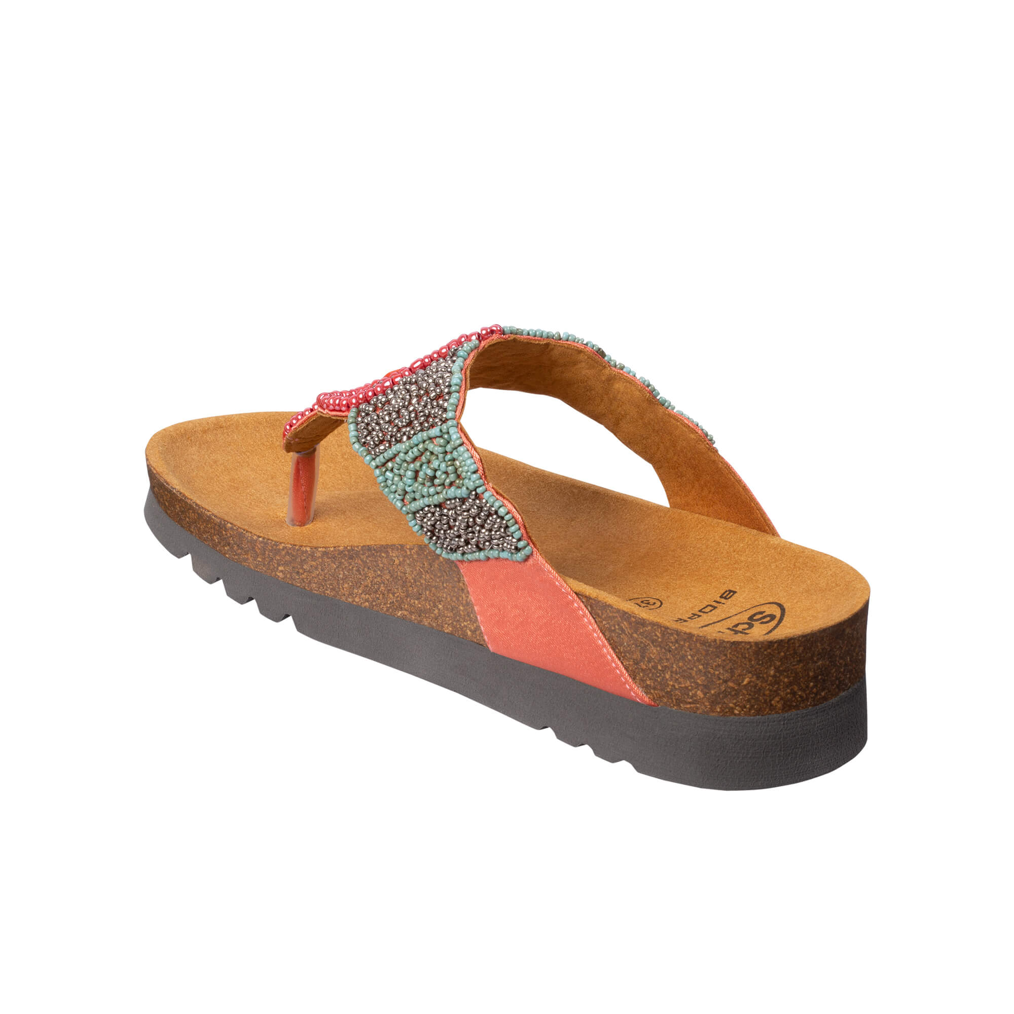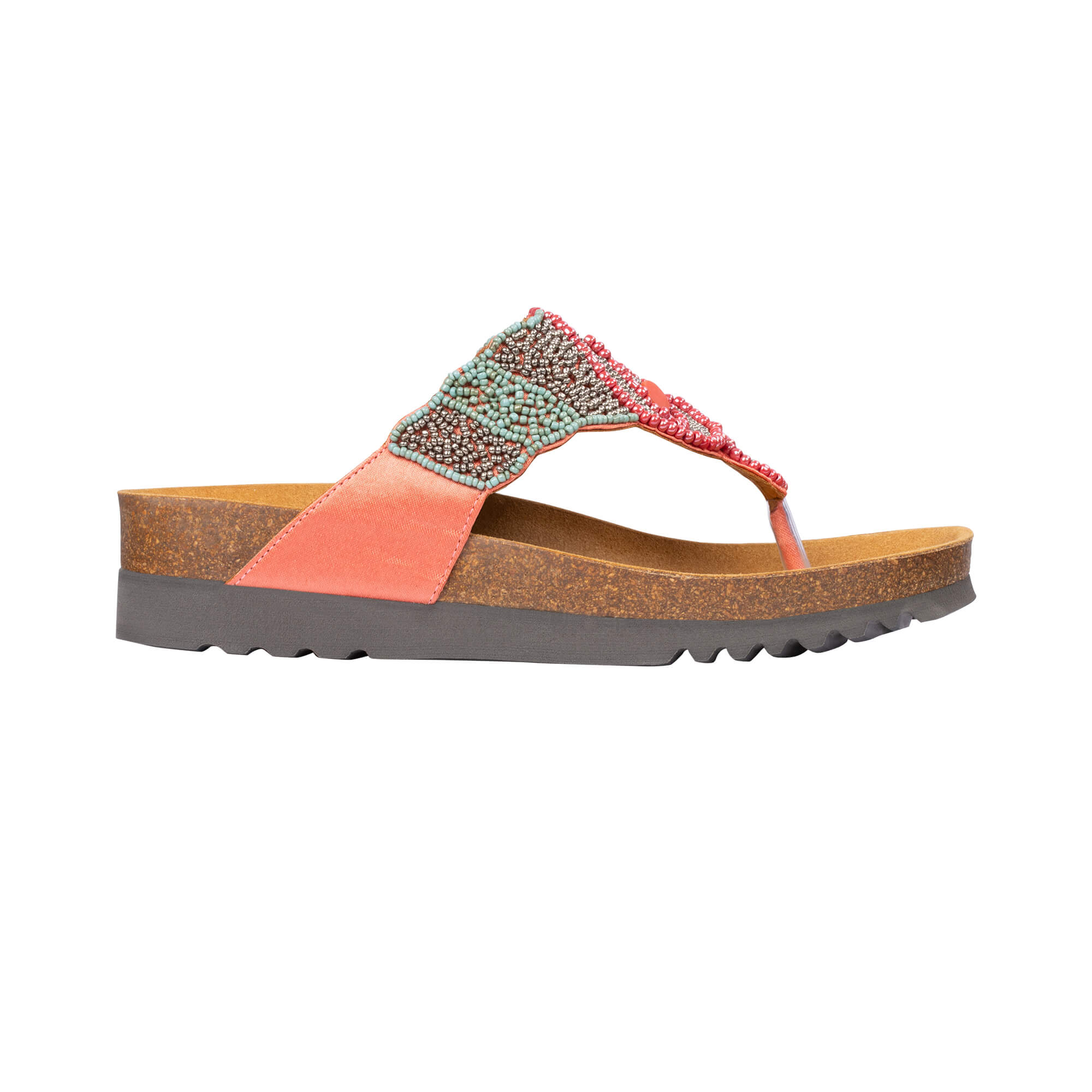 Capture the spirit of a romantic sunset on a summer evening with Panama flip flops. This ethnic sandal will enchant you with its feminine design and pink satin fabric upper on which beads shimmer in shaded nuances like clouds at sunset. Panama is fitted with a soft protection on the flip flops for greater comfort. The shoe is also flexible, lightweight and equipped with Scholl Bioprint® technology with the characteristic natural cork and rubber footbed designed to keep your foot in the right position. The Scholl Bioprint® footbed now has a soft core that will make your walk even more comfortable thanks to its new formula.