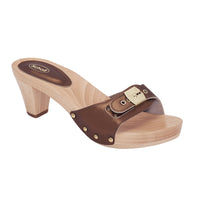 Pescura is the original wooden mule by Scholl, a true 1970s icon and must-have to give a retro touch to any look. Designed and made entirely in Italy with high-quality materials such as the pure limewood base and the fully adjustable leather upper.
