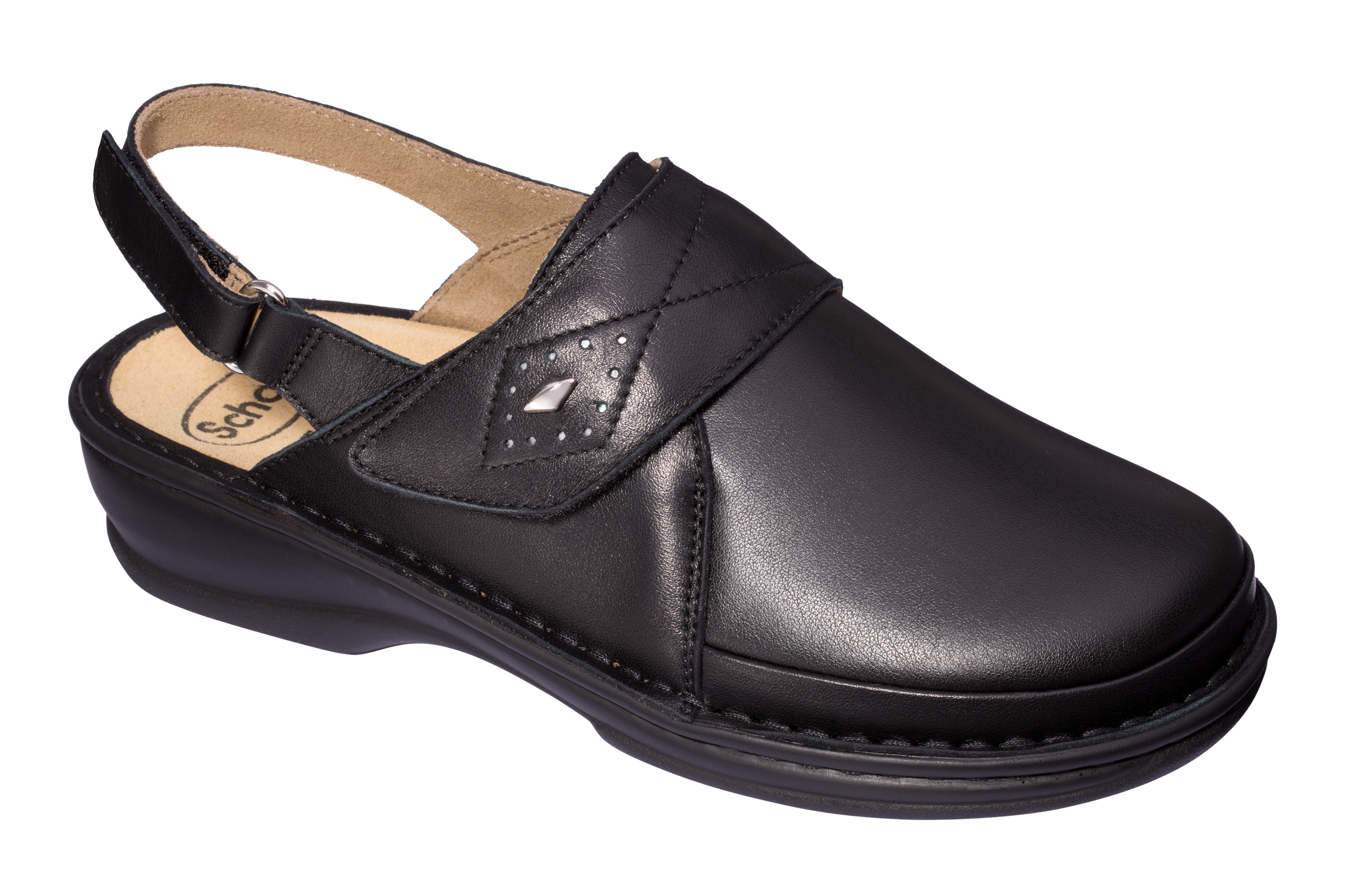 Roberta is a slipper that has been designed to be comfortably worn yet which elegantly adapts itself to all styles and scenarios. A wide portion of the leather upper is elasticated in order to ensure greater comfort for particularly delicate feet or those with hallux valgus (bunions). Moreover, the Velcro band on the upper ensures excellent adjustability. This footwear is characterised by Scholl Bioprint® - Removable Insole technology, with a removable cork and rubber insole.