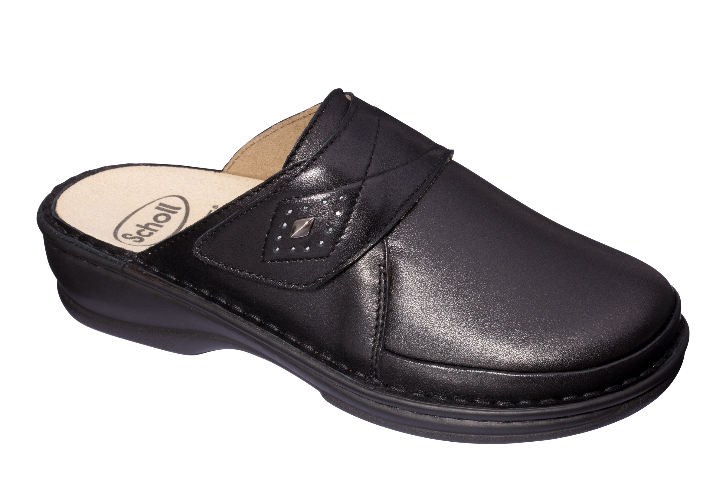 Roberta is a slipper that has been designed to be comfortably worn yet which elegantly adapts itself to all styles and scenarios. A wide portion of the leather upper is elasticated in order to ensure greater comfort for particularly delicate feet or those with hallux valgus (bunions). Moreover, the Velcro band on the upper ensures excellent adjustability. This footwear is characterised by Scholl Bioprint® - Removable Insole technology, with a removable cork and rubber insole.
