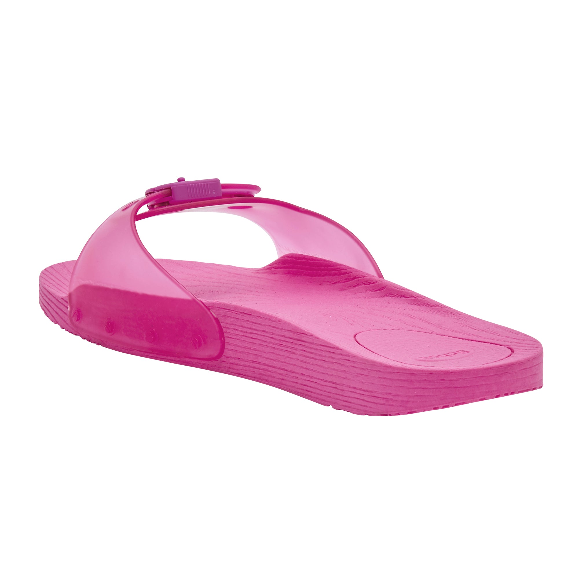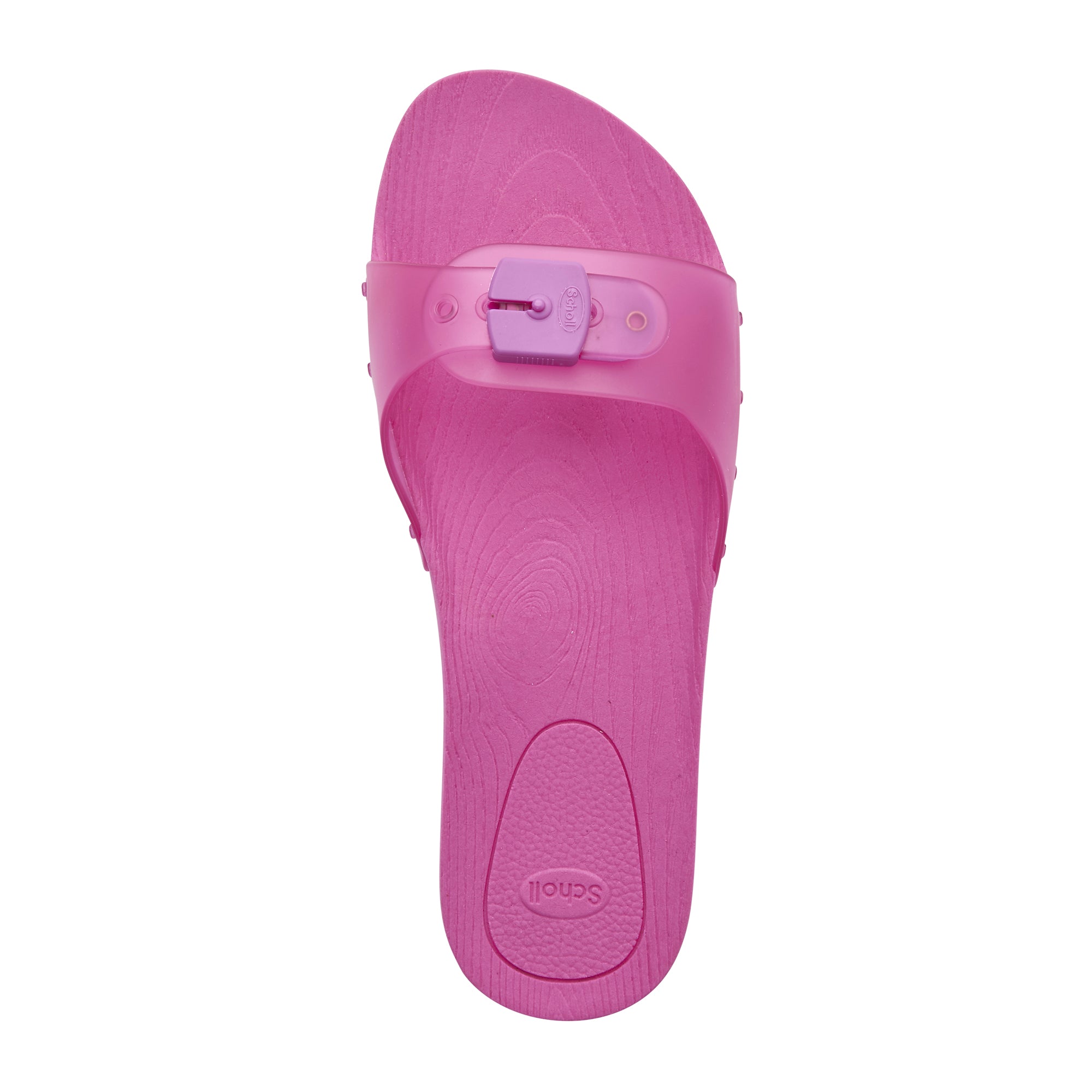 For real Scholl lovers who don't even wish to forego a Pescura at the seaside, the Scholl pop have made a comeback! The unmistakable upper of the Pescura mule, the iconic buckle and wood effect of the sole recall the classic trendy, versatile style Scholl mule with delightfully pop colours!