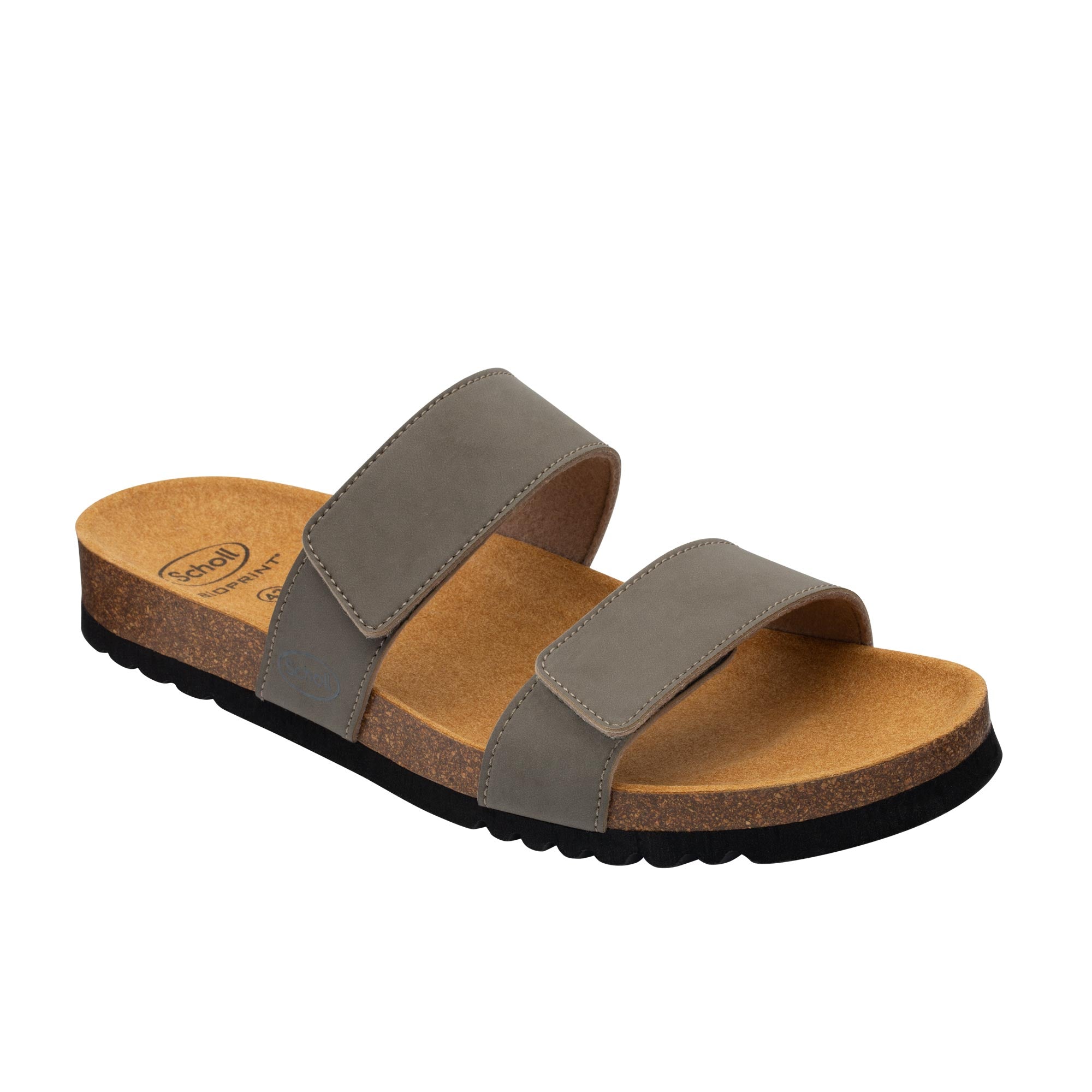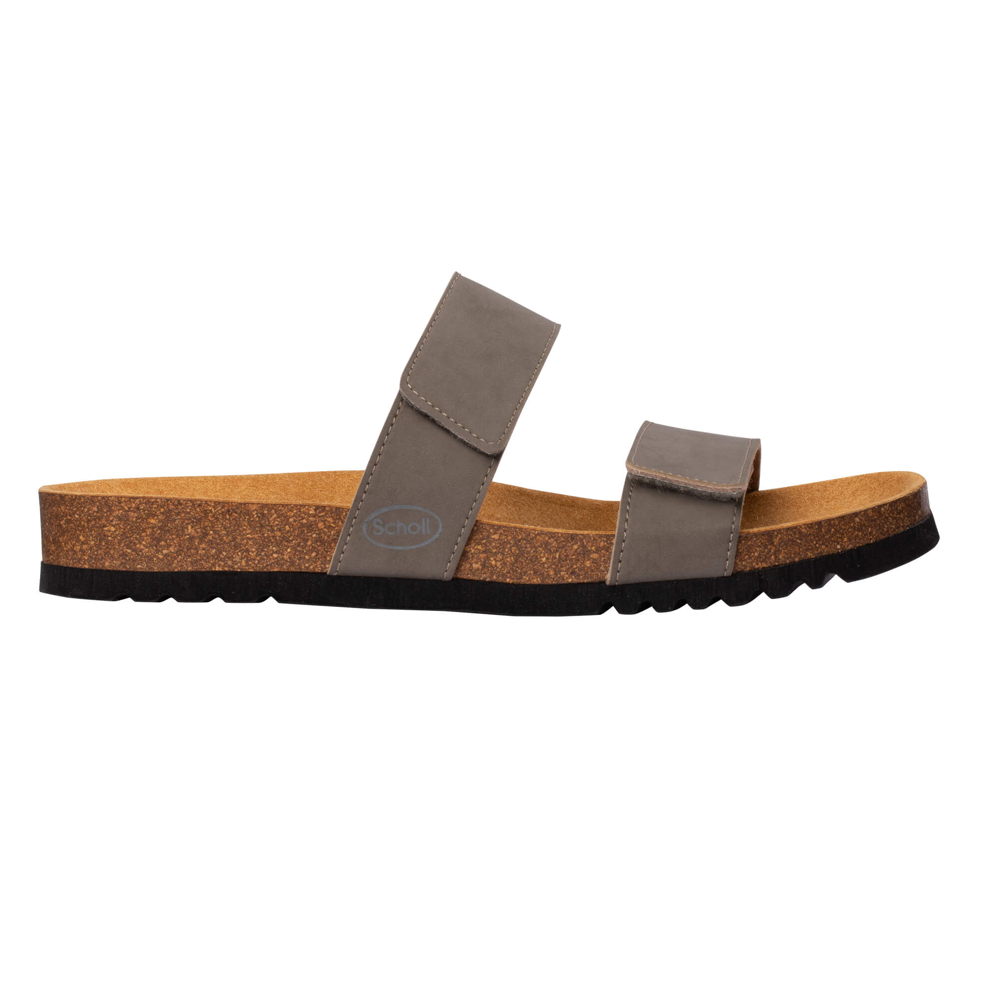 Tymeg is the mule sandal with Scholl Bioprint® technology fitted with the characteristic natural cork and rubber insole that has been ergonomically designed to keep the foot in the right position. This is a practical, casual model with a double leather band that delicately embraces the foot. The velcro closure ensures perfect adaptability to your foot.
