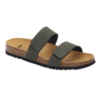 Tymeg is the mule sandal with Scholl Bioprint® technology fitted with the characteristic natural cork and rubber insole that has been ergonomically designed to keep the foot in the right position. This is a practical, casual model with a double leather band that delicately embraces the foot. The velcro closure ensures perfect adaptability to your foot.